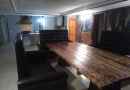 Большой зал и стол, мангал в зале, уютно, парная можно с веником.