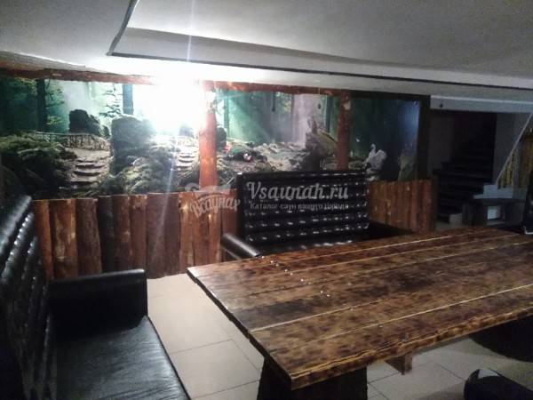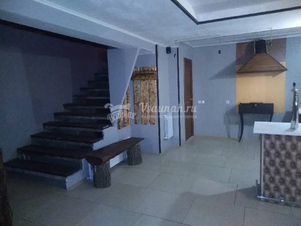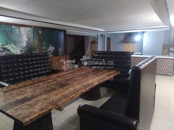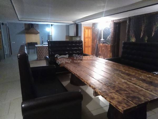 Большой зал и стол, мангал в зале, уютно, парная можно с веником.